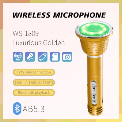 The WS-1809 supports Bluetooth wireless technology with a 10-meter transmission range for stable audio streaming. Ideal for wireless karaoke microphone bluetooth 5.3.