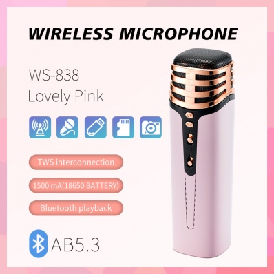 The WS-838 supports Bluetooth wireless technology with a 10-meter transmission range for stable audio streaming. Ideal for wireless karaoke microphone bluetooth 5.3.